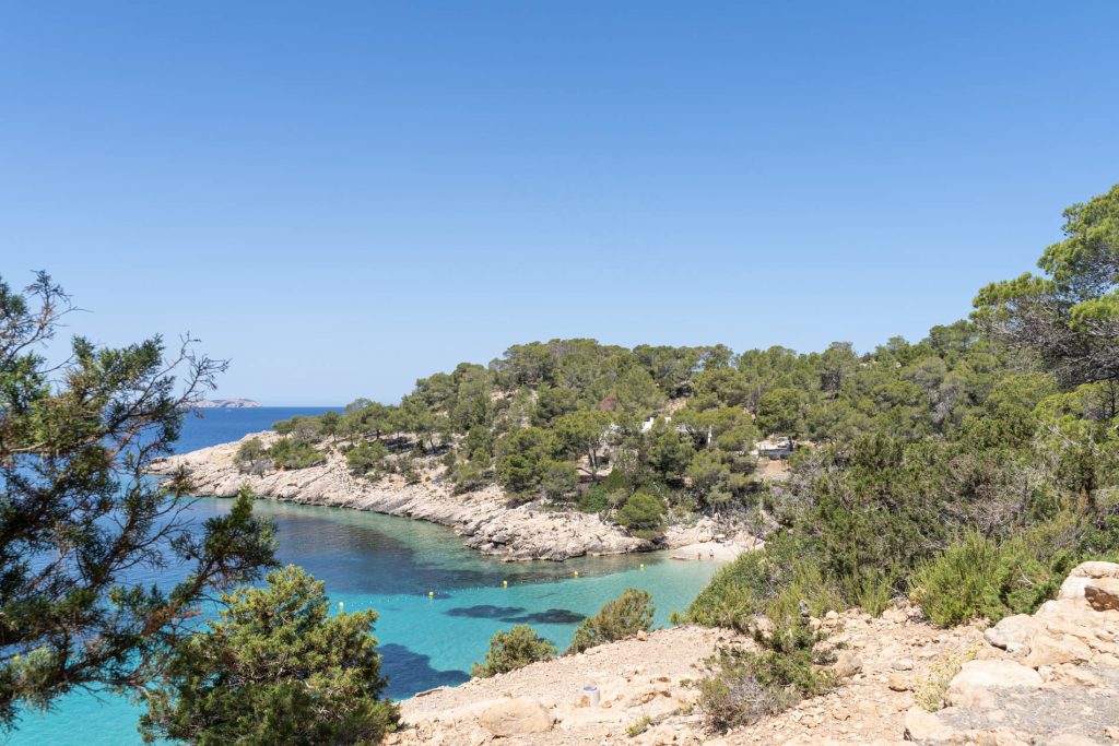 Surrounded by green surroundings, Cala Salada is one of the best and most visited coves in Ibiza. Cala Salada and Cala Saladeta, its neighbor, arise from welcoming entrances that form two pleasant coves of golden sands and crystalline waters that reflect bluish colors.
