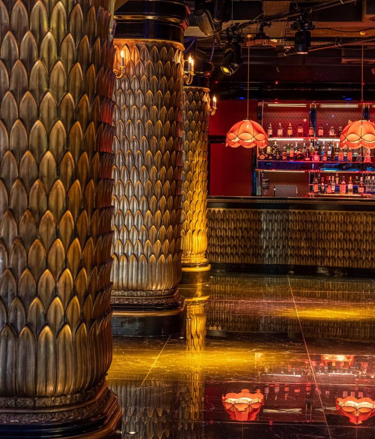 The nightclub is based on 1930s Shanghai jazz clubs in a nightclub with velvet décor, Asian cabaret and carpets.