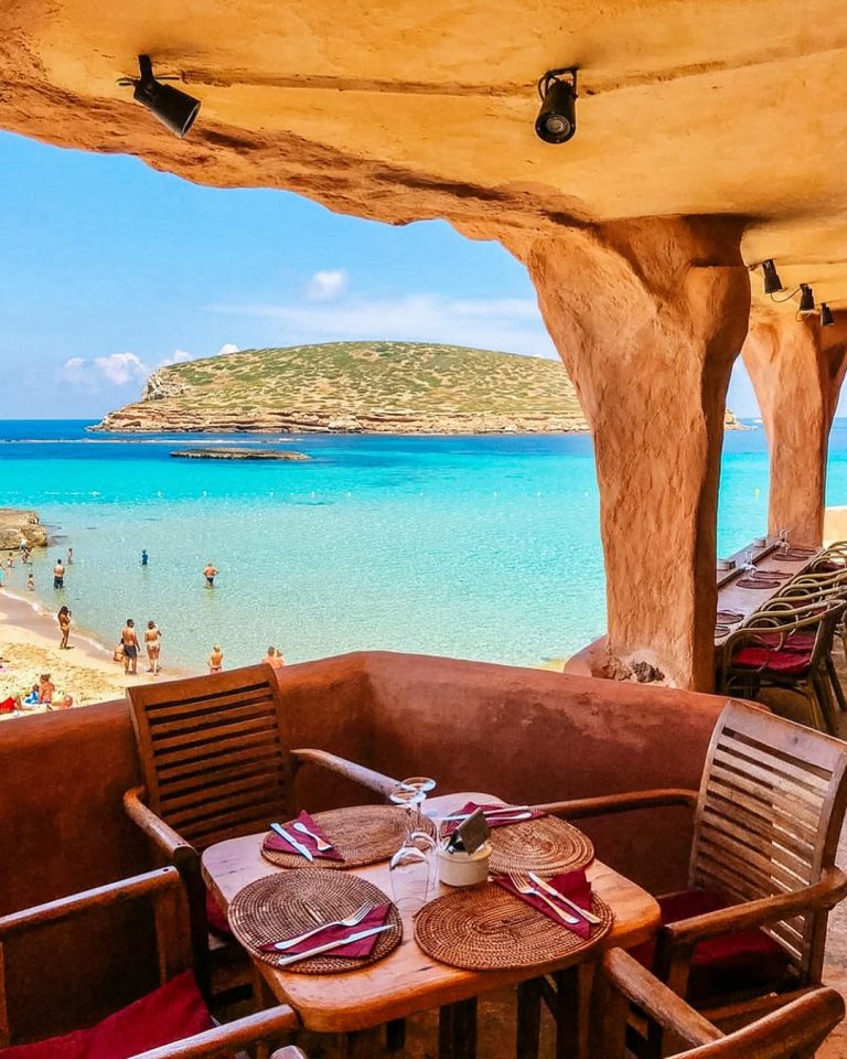 This beach bar is located on a rock that divides Cala Comte into two unique areas. Order a cocktail or freshly squeezed natural juice while you enjoy a sunset under one of the umbrellas or at the privileged tables of the establishment with music that will make you live an experience to remember.