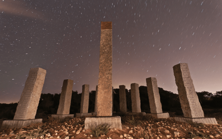 This mysterious sculpture is made up of 13 solid basalt columns weighing 420 tons that were transported by ship from Turkey to Ibiza.